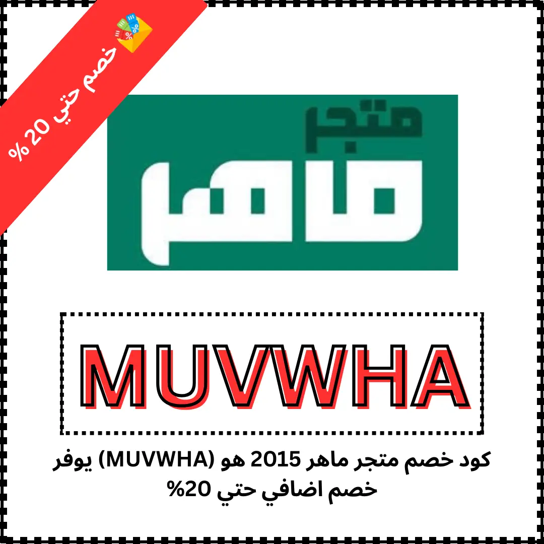 كود خصم متجر ماهر 2015 هو (MUVWHA) يوفر خصم اضافي حتي 20%علي جميع منتجات maherstore في السعودية الشهير بحد ادني 2 ريال سعودي وحد اقصي 100 ريال سعودي للخصم وبدون حد ادني لاجمالي مبلغ الطلب.