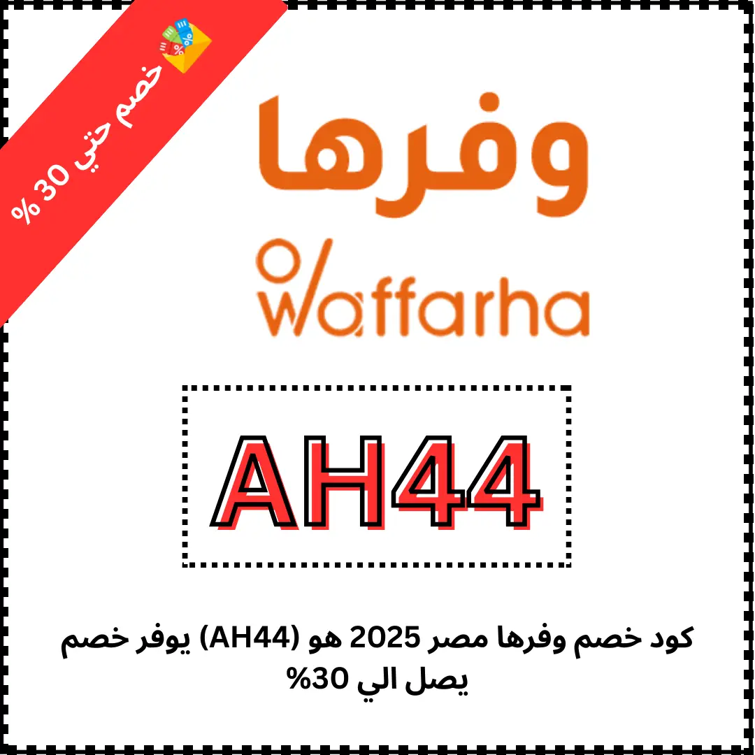 كود خصم وفرها مصر 2025 هو (AH44) يوفر خصم يصل الي 30% كاش باك علي جميع المنتجات من تطبيق waffarha المعروف بحد اقصي 25جنيها مصريا يسري الكوبون مرة واحدة لكل مستخدم.